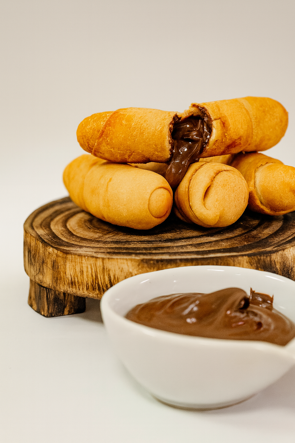 A delicious 45-gr tequeño stuffed with hazelnut and milk chocolate cream — ideal for cooking in an air fryer or deep-frying.